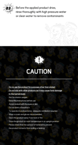 Spray evenly, allow reaction, agitate if necessary, then rinse thoroughly.